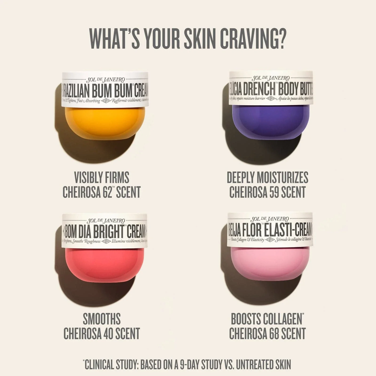 Brazilian Bum Bum Cream de SOL DE JANEIRO , adorée dans le monde entier pour son efficacité et son parfum iconique. Formulée avec l’extrait de guaraná riche en caféine, elle contribue à lisser et raffermir l’apparence de la peau. Sa texture fondante et rapidement absorbée hydrate intensément grâce au beurre de cupuaçu et à l’huile de noix du Brésil, riche en sélénium. Enrichie en antioxydants, elle protège la peau des agressions extérieures tout en laissant un fini soyeux et lumineux. Son parfum envoûtant Cheirosa 62™ aux notes de pistache, caramel salé et vanille rend son application addictive.