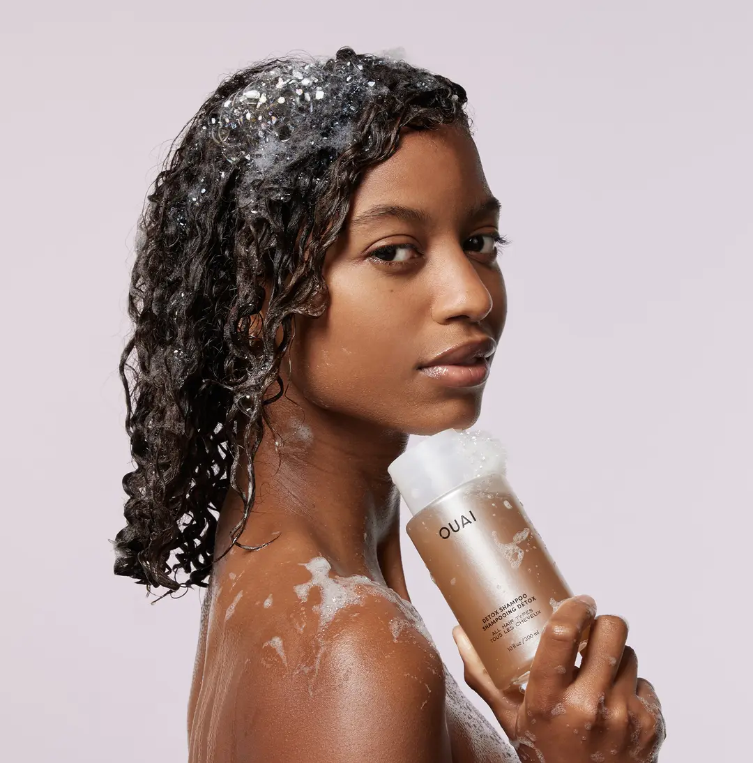 Detox Shampoo de OUAI nettoie en profondeur pour éliminer impuretés, excès de sébum, résidus de produits coiffants et dépôts d’eau dure, tout en préservant l’hydratation naturelle des cheveux. Enrichi en vinaigre de cidre de pomme pour purifier et raviver l’éclat, et en kératine hydrolysée pour lisser et illuminer, il laisse les cheveux frais, doux et brillants. Son parfum luxueux aux notes de rose, bergamote, litchi et musc transforme chaque lavage en véritable moment sensoriel. Adapté à tous les types de cheveux.