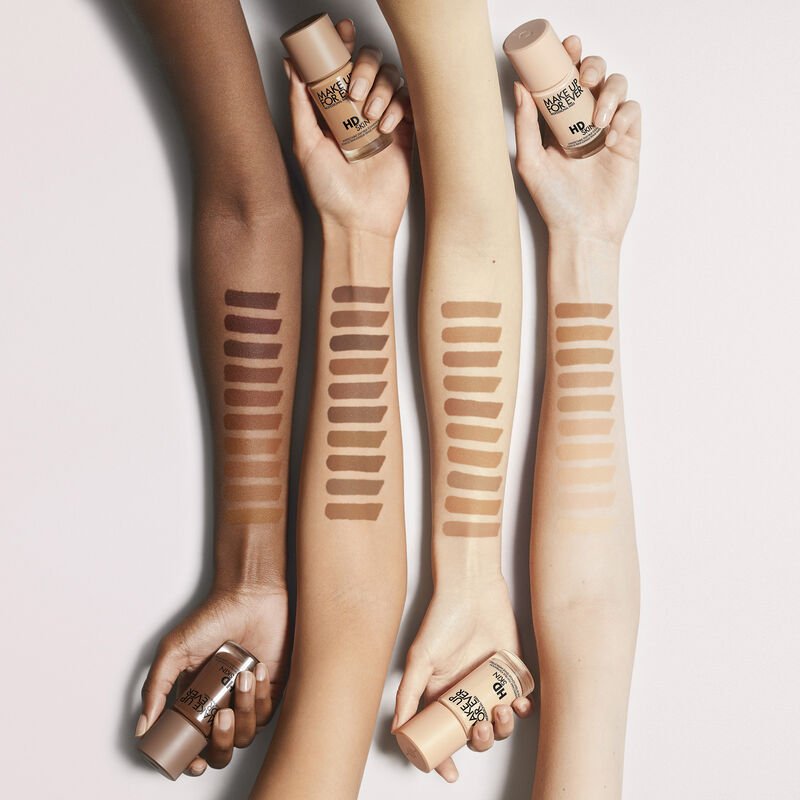 HD Skin Fond de Teint Longue Tenue Imperceptible de Make Up For Ever offre un fini naturel semi-mat et une tenue jusqu’à 24 heures. Sa formule modulable, de couvrance moyenne à haute, unifie parfaitement le teint tout en fusionnant avec la peau grâce à la technologie micro-skin. Conçu pour les peaux normales à grasses, il résiste à l’eau, à la transpiration et ne transfère pas. Disponible en 40 teintes réparties par familles et sous-tons, il s’adapte à toutes les carnations. Sa conception éco-responsable et sa formule sans ingrédient d’origine animale en font un choix performant et engagé.