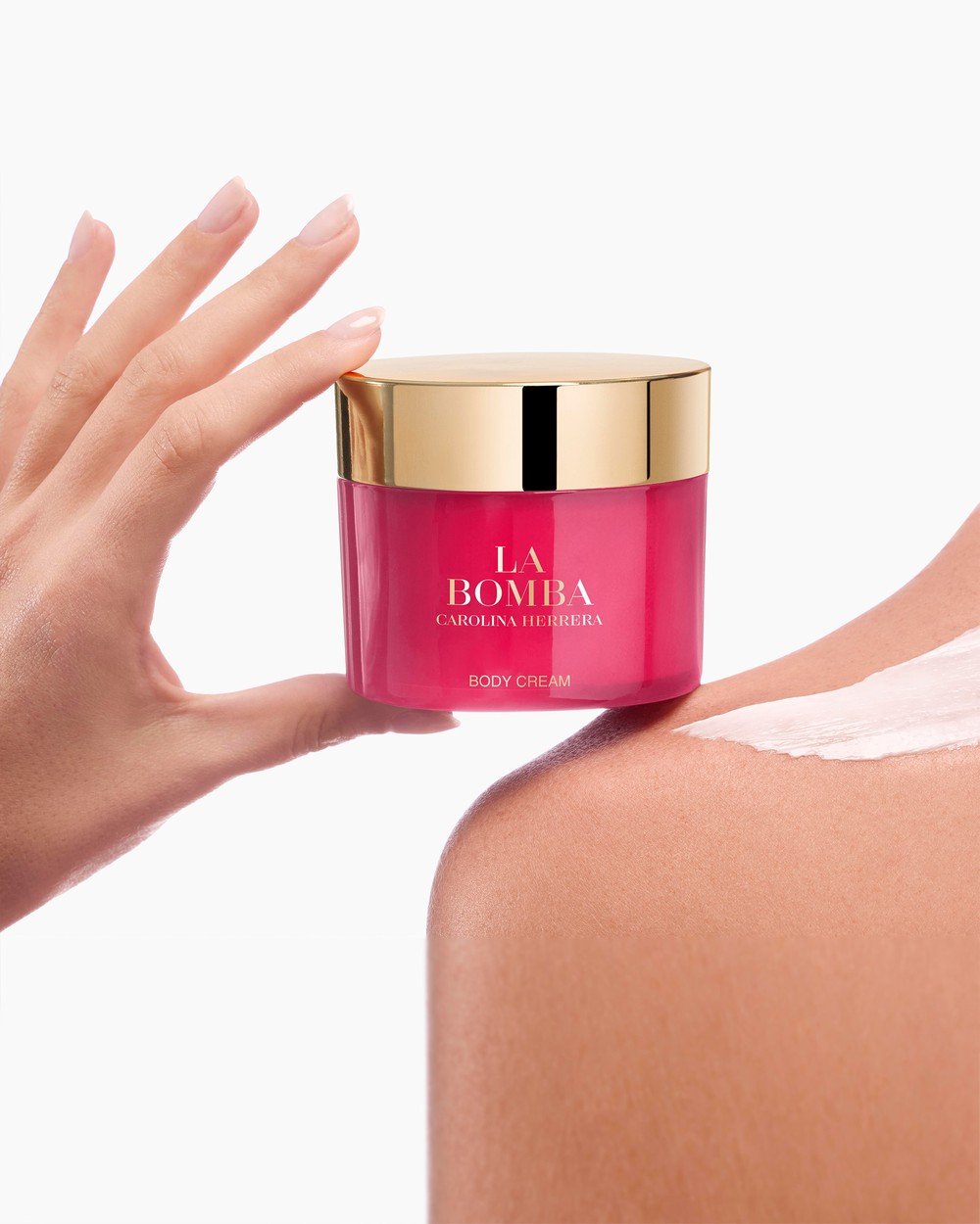 La Bomba Body Cream de CAROLINA HERRERA nourrit intensément la peau tout en la parfumant d’un sillage joyeux et ensoleillé. Sa texture riche et onctueuse hydrate en profondeur et laisse la peau douce, lisse et confortable. Infusée de notes exotiques de pitaya, de pivoine cerise florale et de vanille solaire, elle offre une expérience sensorielle lumineuse. Idéale pour sublimer l’éclat naturel de la peau, elle dépose un voile délicatement parfumé. Un soin parfait pour compléter une routine beauté élégante et féminine.