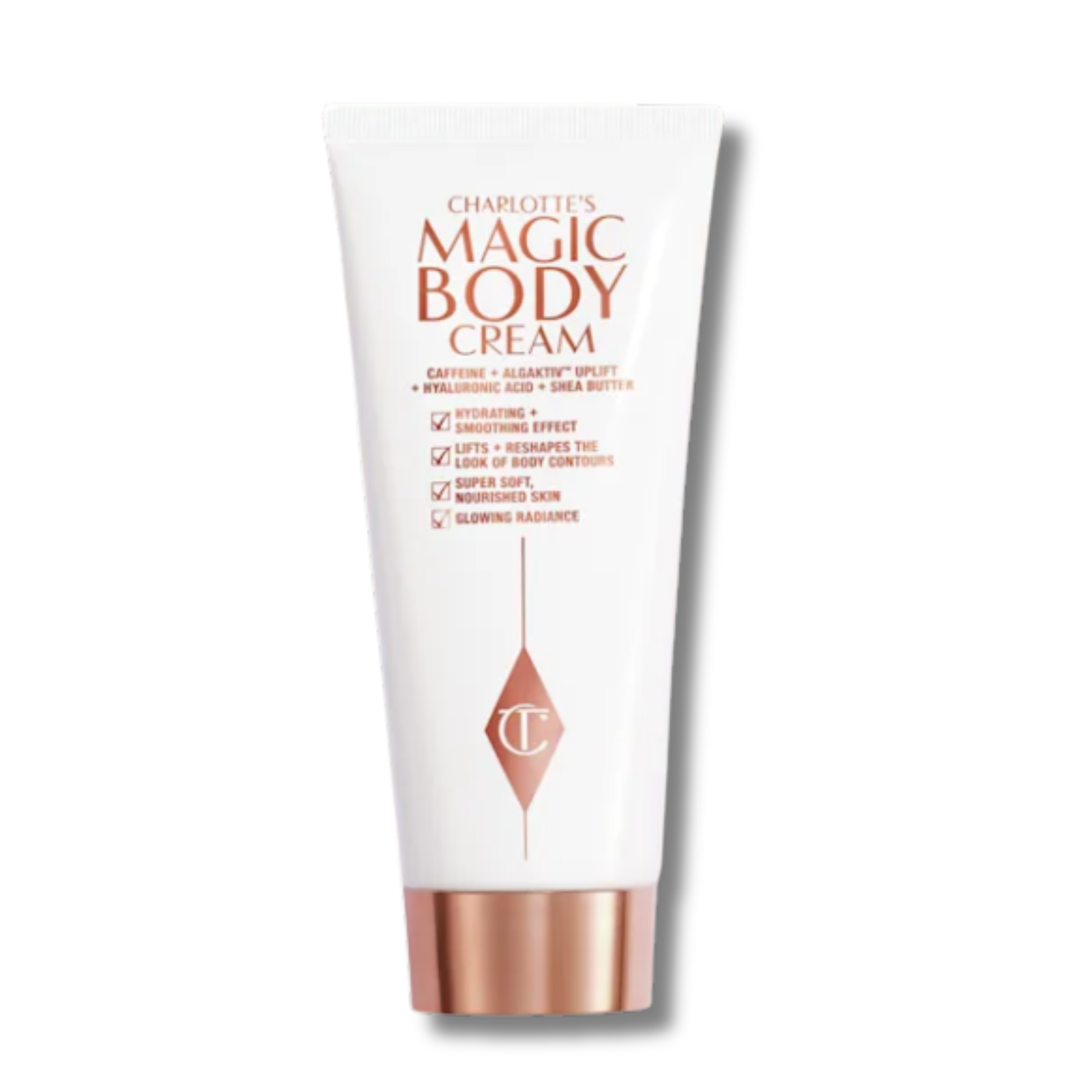 Magic Body Cream de Charlotte Tilbury est un soin corps hydratant et raffermissant inspiré de l’iconique Magic Cream. Sa formule riche, enrichie du complexe exclusif Magic 8 Matrix, aide à nourrir intensément la peau tout en améliorant sa fermeté et son éclat. Grâce à une combinaison d’actifs puissants comme l’acide hyaluronique, les vitamines et les huiles végétales, la peau paraît plus lisse, tonique et lumineuse. Sa texture onctueuse pénètre facilement sans laisser de film gras, offrant un confort immédiat. Idéale pour une utilisation quotidienne, elle sublime la peau et révèle une apparence visiblement plus jeune et revitalisée.