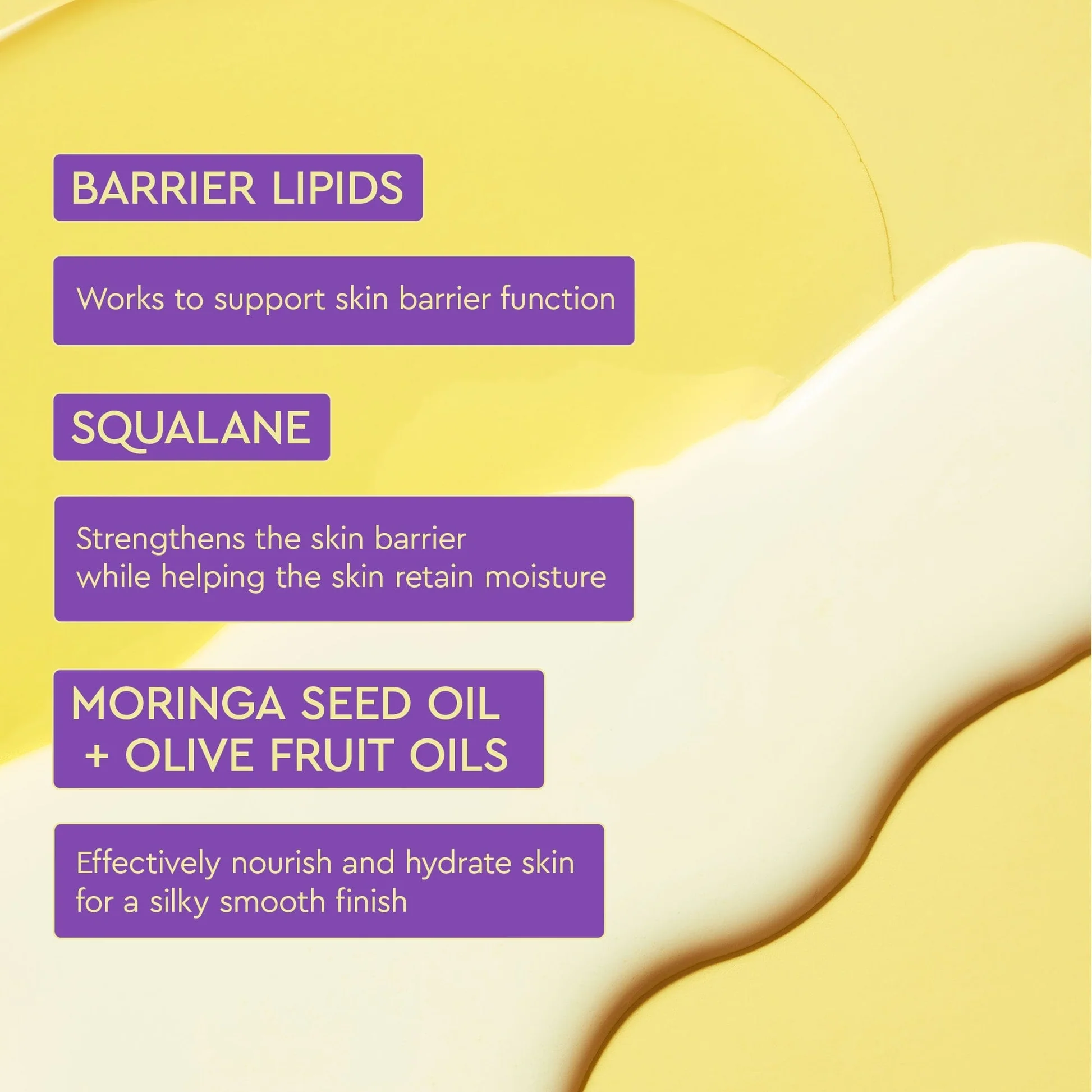 - Laisse la peau douce, souple et hydratée sans fini gras.