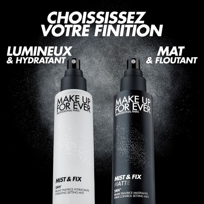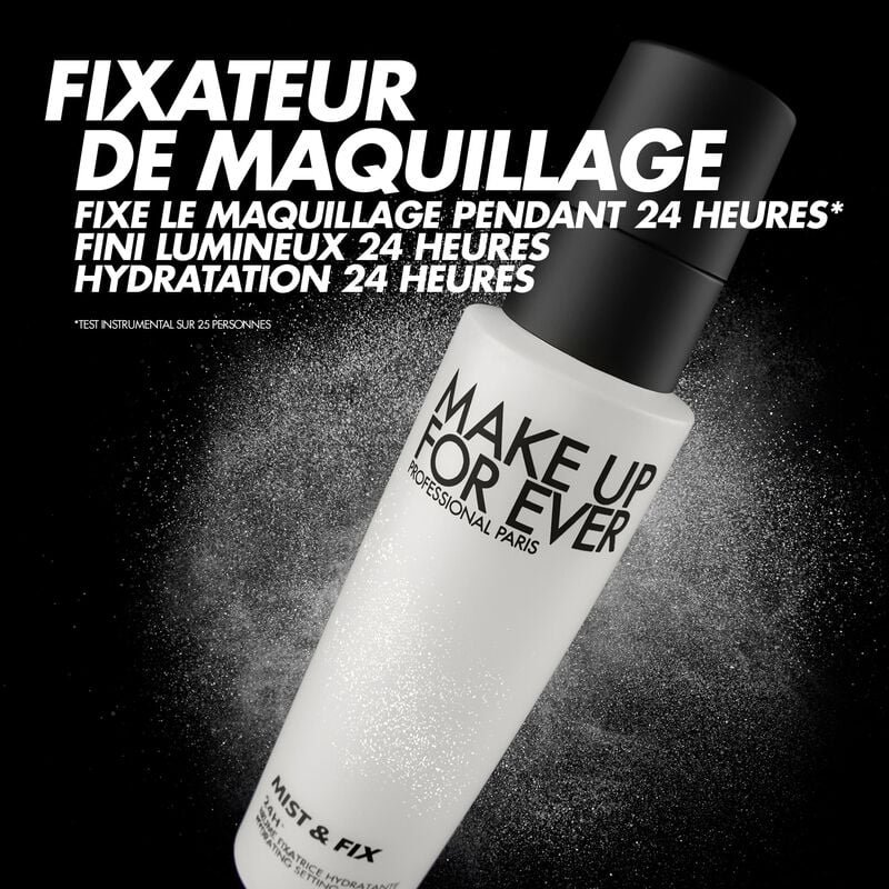 Mist & Fix de Make Up For Ever est une brume fixante hydratante conçue pour prolonger la tenue du maquillage tout en apportant confort et éclat à la peau. Enrichie en acide hyaluronique et en aloe vera, sa formule hydrate intensément et rafraîchit instantanément le visage. Sa brume micro-fine se dépose uniformément sans alourdir, offrant un fini naturel et lumineux. Idéale pour les peaux normales à sèches, elle fixe le maquillage jusqu’à 24 heures tout en améliorant son rendu. Un geste simple et efficace pour un maquillage impeccable du matin jusqu’au soir.