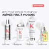 Première Fondant Fluidité Réparateur de KÉRASTASE est un soin décalcifiant et réparateur conçu pour les cheveux abîmés et fragilisés. Sa formule innovante élimine l’excès de calcium, responsable de la rigidité et de la casse capillaire, tout en réparant les chaînes de kératine à l’intérieur de la fibre. Ce soin enrobe les cheveux de douceur, hydrate intensément et restaure leur force. Résultat : des cheveux plus souples, fluides et éclatants de santé, faciles à coiffer et d’une légèreté incomparable.
