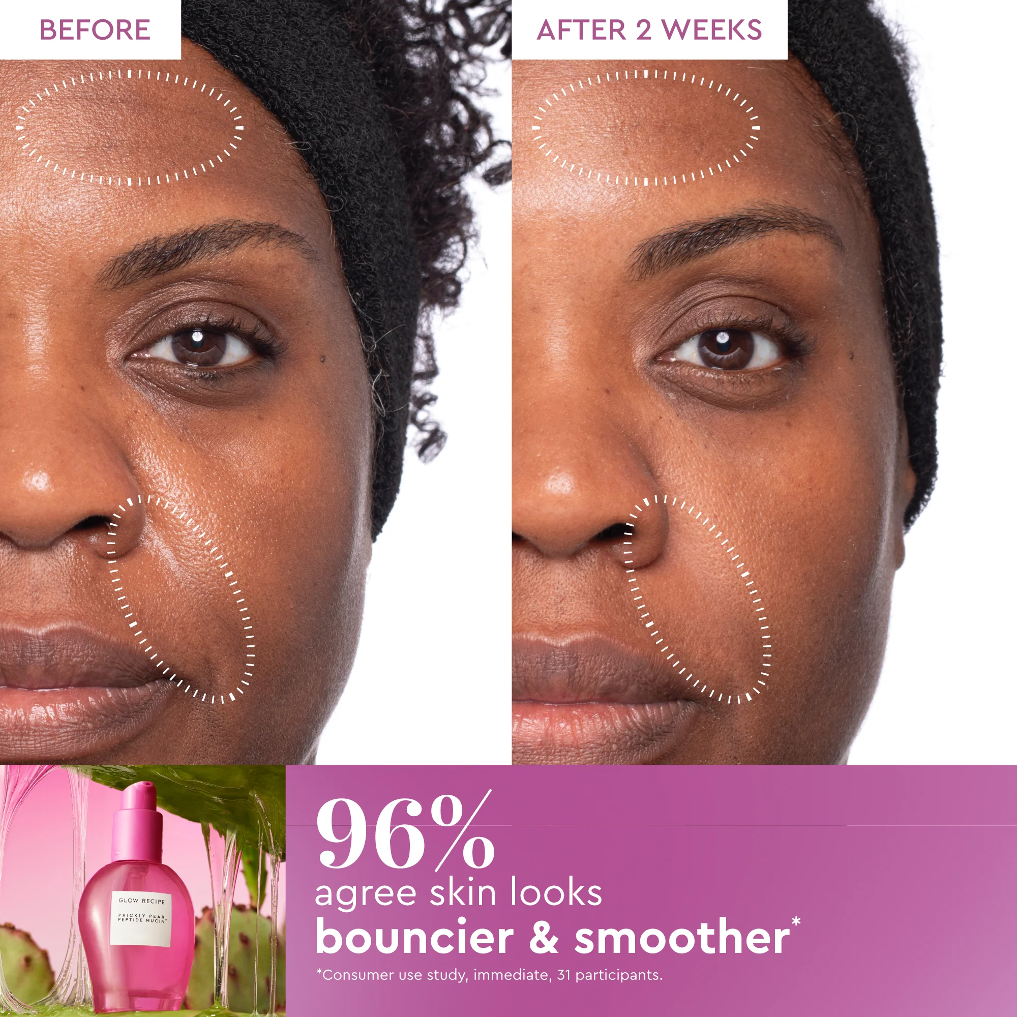 Prickly Pear Peptide Mucin de GLOW RECIPE est un soin innovant qui aide la peau à rester rebondie, ferme et éclatante. Sa formule vegan et ultra-nourrissante hydrate en profondeur, renforce l’élasticité et soutient la barrière cutanée. Cliniquement prouvé pour améliorer la densité de la peau, il affine le grain de peau et apporte un éclat lisse et raffermi. Sans parfum ajouté, non comédogène et 100 % vegan, ce soin convient même aux peaux sensibles.