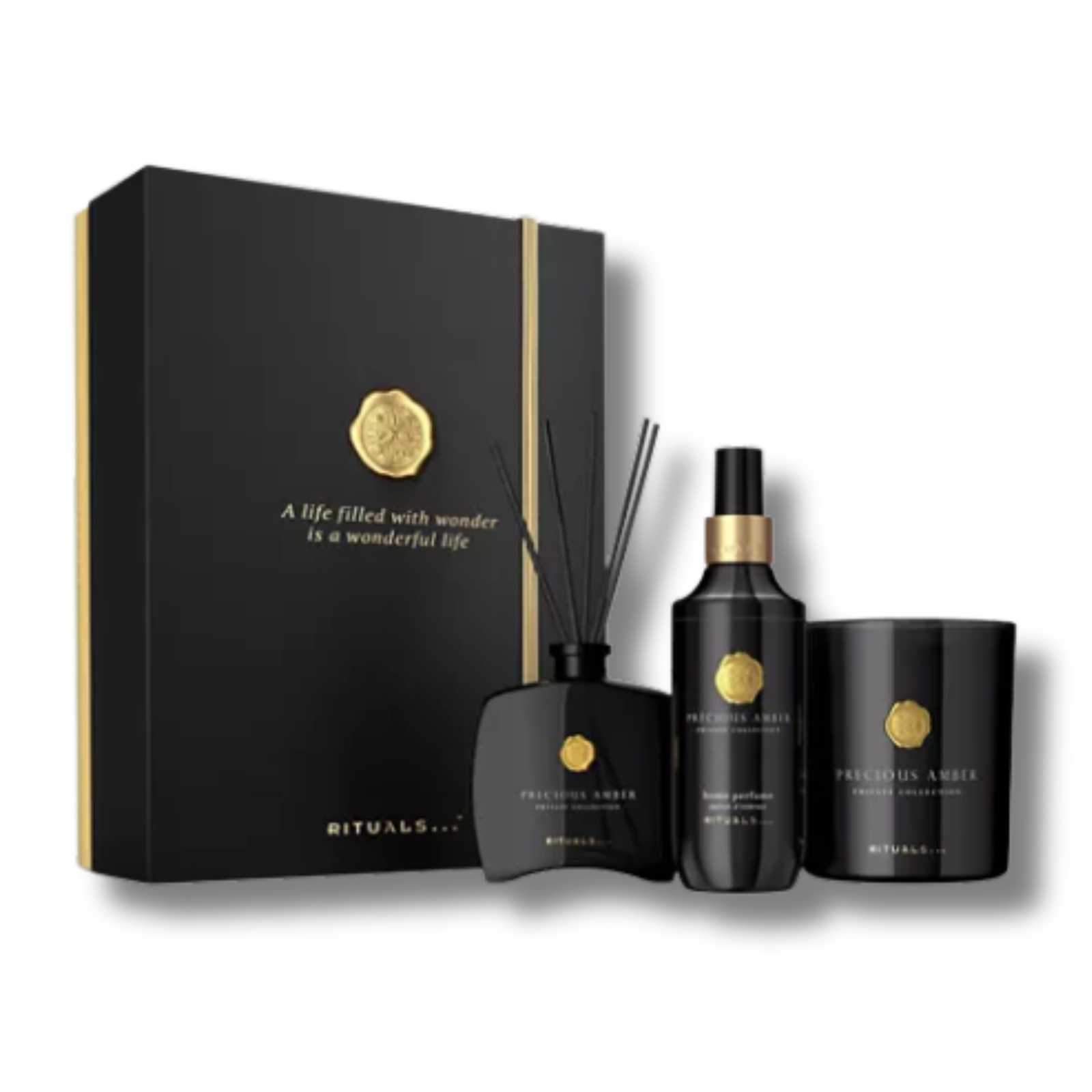 Rituals Amber Precious Large Gift Setest une invitation à un véritable voyage sensoriel aux notes chaleureuses et raffinées. Cette collection dévoile un parfum boisé et épicé qui s’ouvre sur des accents aromatiques de genévrier et de cardamome fraîche, avant de révéler un cœur intense mêlant cannelle et patchouli. Idéal pour créer une atmosphère élégante et apaisante à la maison, ce coffret transforme chaque instant en moment de bien-être. Présenté dans une boîte réutilisable, il allie plaisir et praticité. Un cadeau parfait à offrir ou à s’offrir pour une expérience olfactive complète.