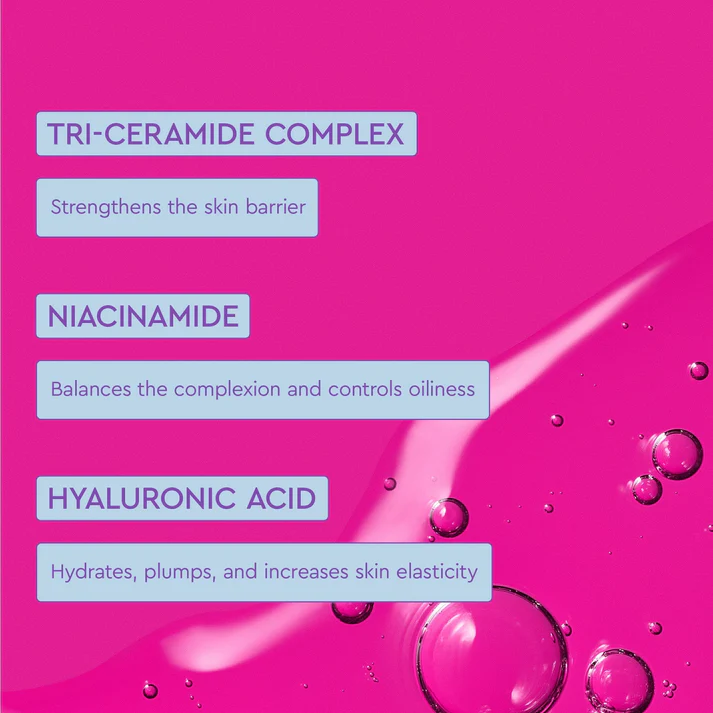 Sa formule légère est enrichie en niacinamide (vitamine B3) pour atténuer les taches pigmentaires et uniformiser le teint, en acide hyaluronique pour une hydratation intense, et en tri-céramides pour renforcer la barrière cutanée. Résultat : un teint plus clair, plus lisse, et protégé des agressions extérieures.