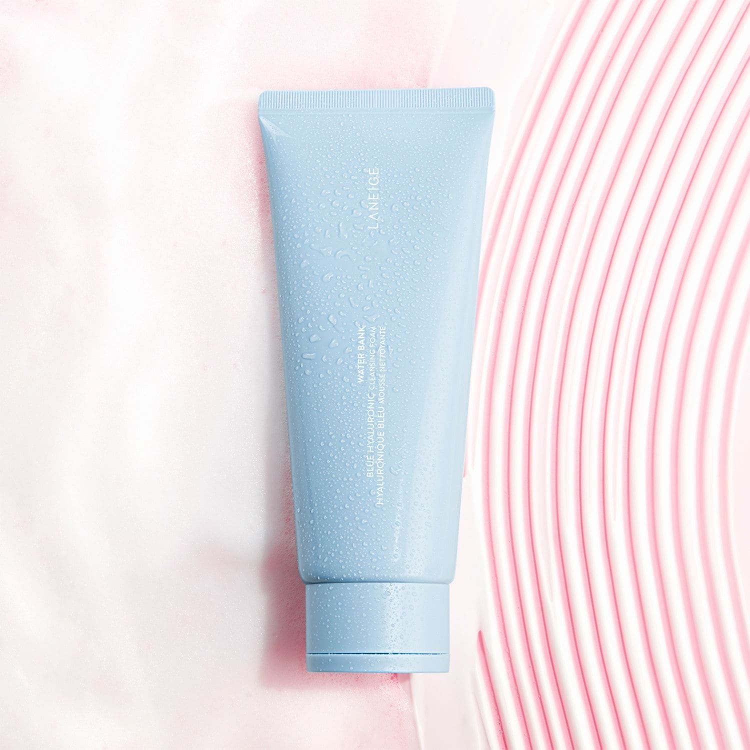 Water Bank Blue Hyaluronic Cleansing Foam de LANEIGE cette mousse nettoyante à la texture rebondie élimine efficacement maquillage, impuretés et excès de sébum tout en respectant la barrière cutanée. Sa formule enrichie en Acide Hyaluronique Bleu, issu d’algues marines fermentées et à faible poids moléculaire, offre une hydratation intense dès le nettoyage. Les capsules de cellulose fondantes et l’enzyme papaïne assurent une exfoliation douce pour une peau lisse, douce et lumineuse, sans sensation de tiraillement.